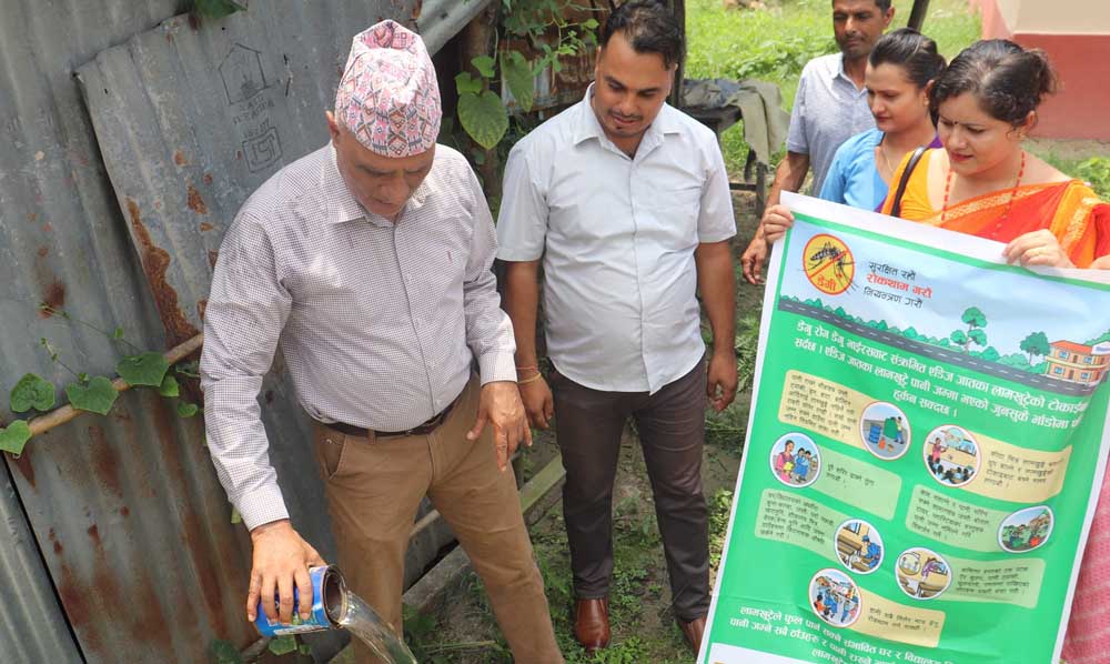 उहाँले डेंगु नियन्त्रणका लागि सबै वडामा अभियान चलाउने भन्दै सबैले आ आफ्नो घर वरिपरि सरसफाइमा ध्यान दिने लामो बाउला भएका कपडा लगाउनु साथै झुलको प्रयोग गरेर मात्रै सुत्न सम्पूर्ण नगरबासीमा आग्रह समेत गर्नुभयो । नगर प्रमुख पोखरेलले लगातार परिरहेको पानी र सरसफाइमा ध्यान नदिँदा डेंगु सङ्क्रमण बढिरहेको बताउनुभयो ।