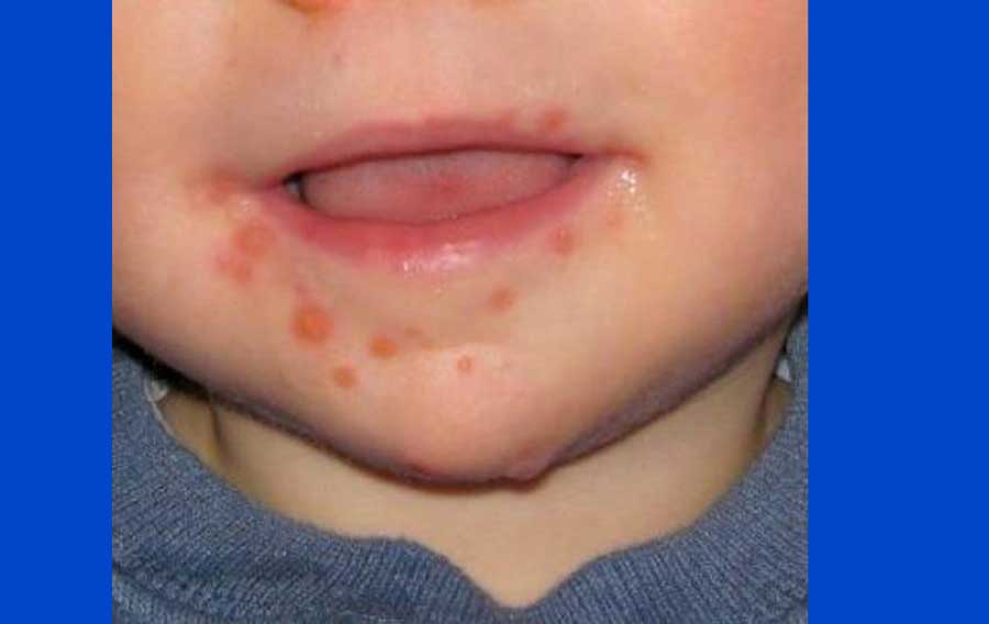 – जिब्रो, गिजा, गाला, पैताला र हत्केलामा रातो बिमिरा आई पानी र पिप जस्तो घाउहरु देखिनु