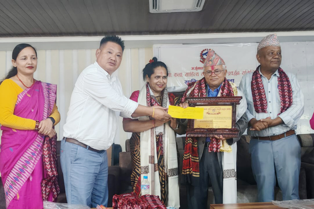 कार्यक्रममा प्रमुख अतिथि बरिष्ठ साहित्कार प्रकाश बुढाथोकी, नगरप्रमुख बलदेवसिंह गोम्देन तामाङ, उपप्रमुख खड्गमाया पराजुली लगायतले सम्मान पत्र हस्तान्तरण गर्नुभएको थियो ।