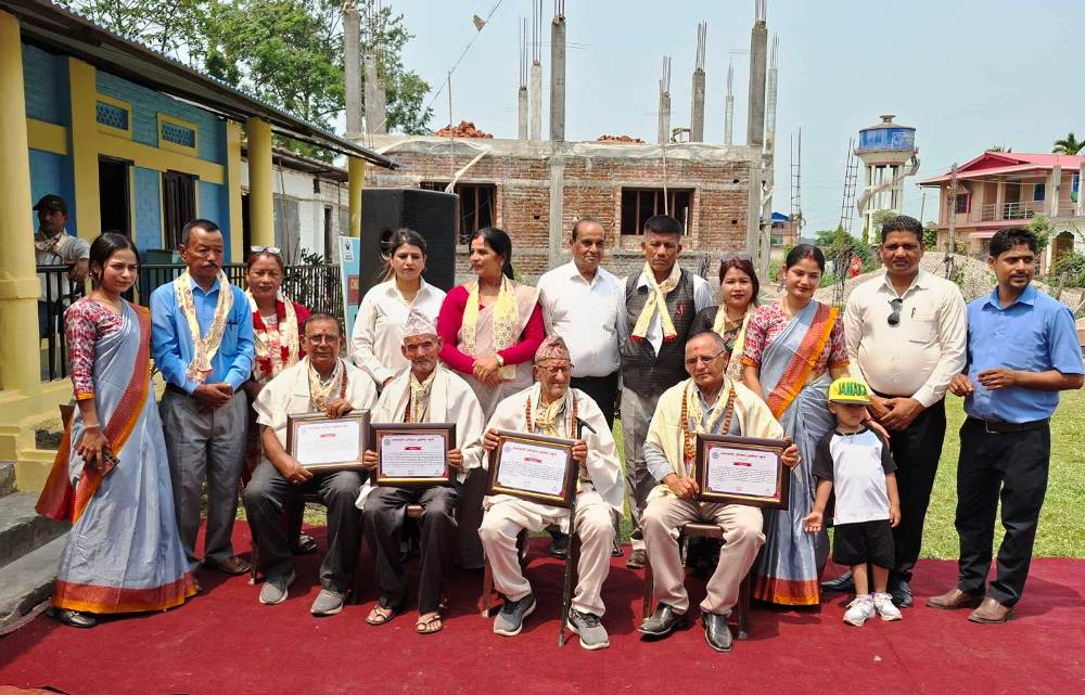 कार्यक्रममा प्रमुख अतिथि वडाध्यक्ष रामप्रसाद दाहाल, स्कूलका व्यवस्थापन समिति अध्यक्ष सत्यनारायण तायल, वडा सदस्य मञ्जु खड्का, शर्मिला पाँचकोटी, मञ्जु दाहाल, प्रकाश राजवंशी लगायतले सम्मानित व्यक्तित्वहरुलाई खादा–मालासहित सम्मान–पत्र प्रदान गर्नुभएको थियो ।