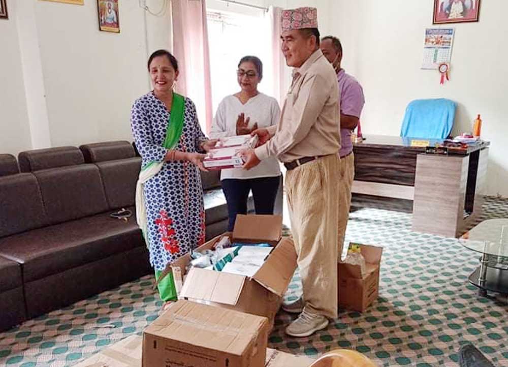 विश्व महामारीका रुपमा फैलिरहेको कोरोना भाइरस न्यनिकरण गर्ने उदेश्यले नगरलाई सेनिटाइजर, मास्क, ग्राउड, सर्जिकल क्याप, चश्मा, पञ्जालगायतका स्वास्थ्य सामाग्री हस्तान्तरण गरेकी हुन् । उनले सेनिटाइजर ५० बोतल, सर्जिकल मास्क एकहजार ५ सय थान, एन ९५ मास्क १५ थान, चश्मा ५ थान, पञ्जा १ सय ५० थान, ग्राउन १० थान, क्याप १० थान नगर प्रमुख हरिकुमार रानालाई प्रदान गरेकी छन् ।