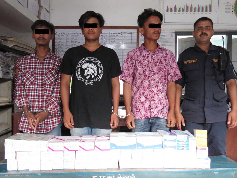 मोरङ, ६ साउन । क्लिनिकबाट अबैध औषधी बिक्री बितरण तथा किनबेच गर्ने ३ जनालाई पक्राउ गरिएको छ । मोरङको बेलवारी नगरपालिका-६ सोमवारेमा रहेको सुसाङ टेक्निकल क्लिनिकबाट अबैध औषधीहरुको बिक्री वितरण भईरहेको भन्ने गोप्य सूचनाका आधारमा १ नम्बर प्रदेश प्रहरी कार्यालयको अनुसन्धान समुह र ईलाका प्रहरी कार्यालय बेलवारीबाट खटिएको प्रहरी टोलीले सुसाङ टेक्निकल हलका संचालक स्थानीय १९ बर्षीय सुसाङ कुमार चौधरी र सोही औषधी पसलमा अबैध औषधी किनी रहेका बेलवारी-५ का २३ बर्षीय शिबजी चौधरी तथा धरान-१७ का २१ बर्षीय किसनलाल थारुलाई पक्राउ गरिएको हो ।