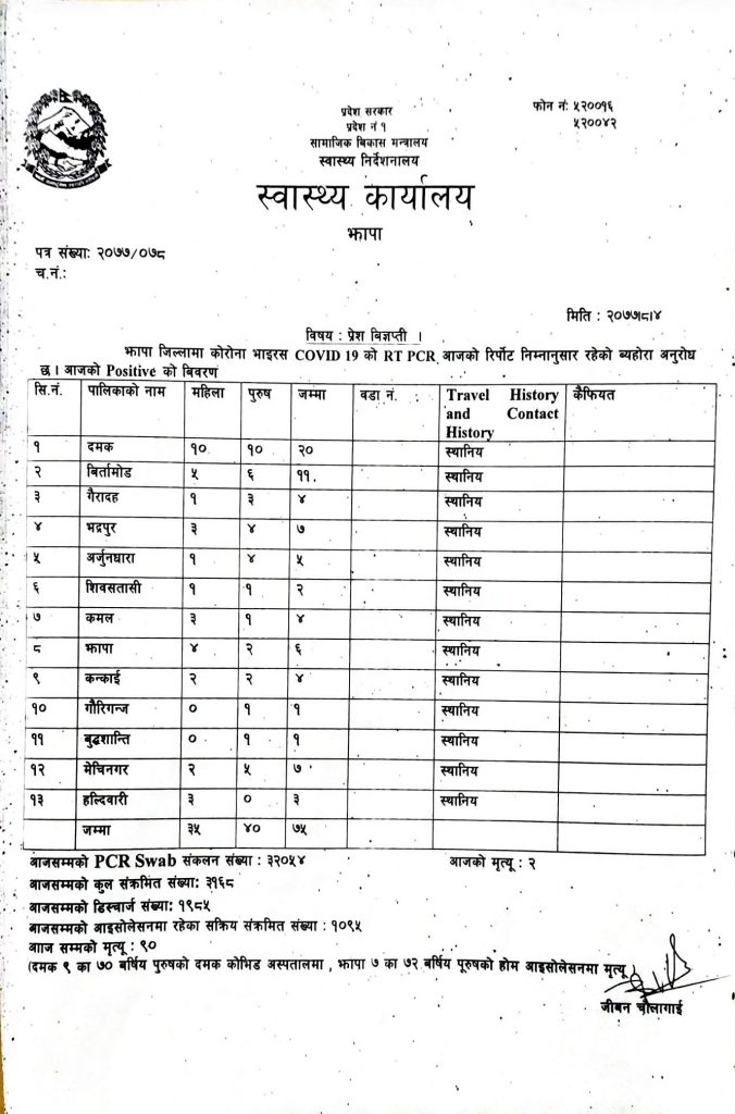 यस्तो छ स्वास्थ्य कार्यालय झापाको आजको रिपोर्ट –