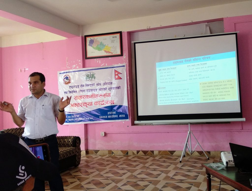 स्वास्थ्य कार्यालयले टाइफाइड रोग तथा टाइफाइड विरुद्ध लगाइने खोप बारे कार्यक्रममा सहभागी सञ्चारकर्मीहरुसँग छलफल गरेको थियो ।
