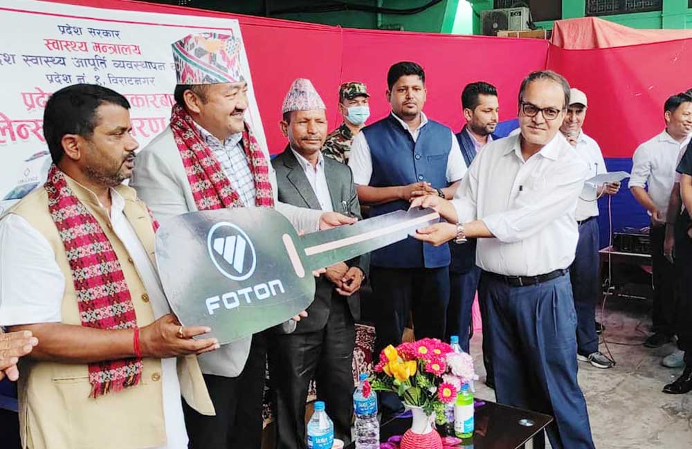सरकारको स्वास्थ्य नीतिअनुसार १४ जिल्ला अस्पतालमा १४ थान एम्बुलेन्स र १४ थान शवबाहन उपलब्ध गराउने नीतिअनुसार पहिलो चरणमा उक्त एम्बुलेन्स प्रदान गरिएको हो ।