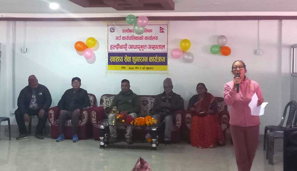 स्वास्थ्य बीमा कार्यक्रमको प्रथम बिन्दुका रुपमा अस्पताल सञ्चालनमा आएको उहाँले बताउनुभयो । अस्पतालमा एक जना मेडिकल अधिकृतसहित नौ जना जनशक्ति रहेको छ । हल्दिबारीमा तीन वटा स्वास्थ्य चौकी र दुई वटा आधारभूत स्वास्थ्य सेवा केन्द्र सञ्चालनमा छन् ।