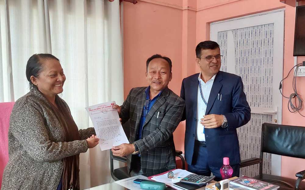 पार्टीका बिर्तामोड नगर कमिटी अध्यक्ष मोहन सुब्बा, सचिव गणेश सौगात कालिकोटे लगायातको टोलीले नगरपालिका प्रमुख पवित्रा महतारा प्रसाईंलाई ध्यानआकर्षण पत्र बुझाएको हो । ज्ञापन पत्रमा नगरपालिका स्वास्थ्य शाखाले बिमा औषधि खरिदमा नगरपालिका आफैँले औषधि खरिद गरी बिरामीलाई वितरण गर्नुपर्नेमा ठेक्का प्रणालीबाट औषधि खरिद र बिक्री गर्ने गरिएको ज्ञापन–पत्रमा जनाईएको छ ।