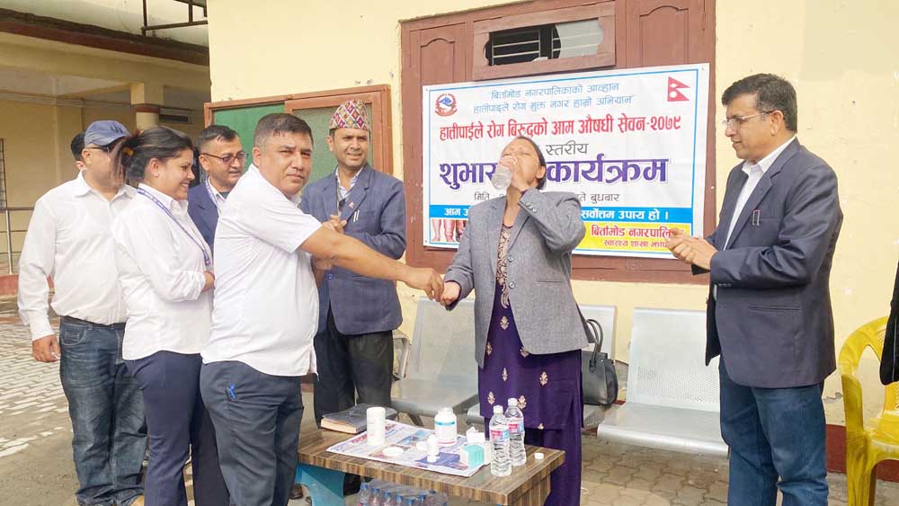 बिर्तामोड, ११ फागुन । बिर्तामोड नगरपालिकामा हात्तीपाइले रोगविरुद्धको आम औषधी सेवन कार्यक्रम शुभारम्भ भएको छ ।