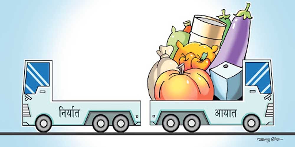 यस अवधिमा आयातसँगै निर्यातमा पनि कमी आएको तथ्यांकले देखाएको छ । नौ महिनाको अवधिमा १२ खर्ब १ अर्ब ५० करोड ८९ लाख ९१ हजार रुपैयाँको आयात भएको छ । यो अघिल्लो वर्षको तुलनामा १८ दशमलव ८ प्रतिशतले कमी हो । यस अवधिमा १ खर्ब १८ अर्ब २७ करोड ९९ लाख ६२ हजार रुपैयाँबराबरको निर्यात भएको जनाएको छ । गत वर्ष सोही अवधिमा १ खर्ब ६० अर्ब ५७ करोड २९ लाख १० हजार रुपैयाँको निर्यात गरेको थियो । निर्यात पनि २६ दशमलव ३४ प्रतिशतले घटेको छ ।