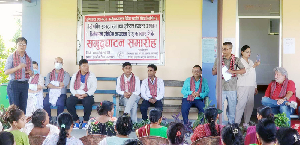 संस्थाका अध्यक्ष बस्नेतको अध्यक्षतामा भएको कार्यक्रममा हल्दिबारी गाउँपालिका अध्यक्ष रबिन्द्रप्रसाद लिङ्देनको प्रमुख आतिथ्य रहेको थियो । स्वास्थ्य परीक्षण कार्यक्रमको उद्घाटन गर्दै प्रमुख अतिथि लिङ्देनले संस्थाले सामाजिक क्षेत्रमा गरेको कार्यको प्रशंसा गरे । संस्थाकी कोषाध्यक्ष गौरीमाया चिमरियाले स्वागत गरेको कार्यक्रममा हल्दिबारी–४ का वडाध्यक्ष सन्तकुमार थापा मगर, वडा नं. ५ का वडाध्यक्ष खड्गबहादुर लावती, प्रहरी चौकीका असई लगायतको आतिथ्य रहेको थियो । क्यान्सर बिज्ञ डा कुसल रिजाल र डा ज्योती भाजु लामाको टिमले स्वास्थ्य परीक्षण गरेका थियो । कार्यक्रम सञ्चालन संस्थाका सचिव मेघराज बास्तोला गरेका थिए ।