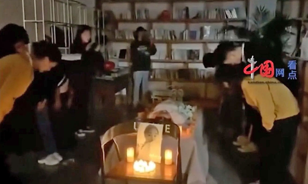 गत शनिबार भएको उक्त भोज सहितको अन्तिम संस्कार कार्यक्रममा उनका करिब १ दर्जन साथीहरु उपस्थित थिए । उक्त अन्तिम संस्कार समारोहमा मधुरो प्रकाशयुक्त कोठाभित्र वांग एउटा खाटमा मरेको लासजस्तै बनेर सुतेकी थिइन् । उनको वरिपरि मैनबत्ती बालिएको थियो । उपस्थित साथीहरुले पनि अन्तिम संस्कारमा जस्तै निहुरिएर वांगलाई श्रद्धान्जली दिएर र उनको वरिपरि घेरा बनाएर उभिए ।