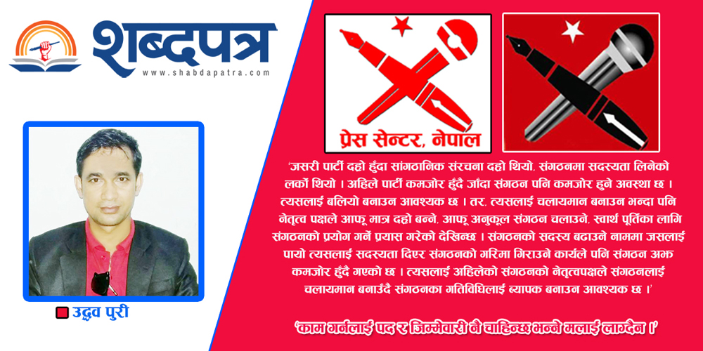 तर, संगठनका गतिविधिलाई चुस्त दुरुस्त गर्न अझैपनि सकिएको खासै देखिदैन । कुनैपनि पार्टी होस् या संगठन होस् स्थापना गर्न ठूलो संघर्ष हुन्छ । तत्कालिन क्रान्तिकारी पत्रकार संघमा धेरै नेतृत्व आए, गए तर त्यस बिषयमा खोज अनुसन्धान गरेनन् । जो नेतृत्वमा आए आफ्नो स्वार्थ पूरा गर्न आए जस्तो मात्र देखियो । कसैलाई पत्रकार महासंघको नेतृत्वमा जानु थियो त कसैलाई संगठन भन्दा पनि आफ्नो स्वार्थ पूरा गर्नु मात्र देखियो ।