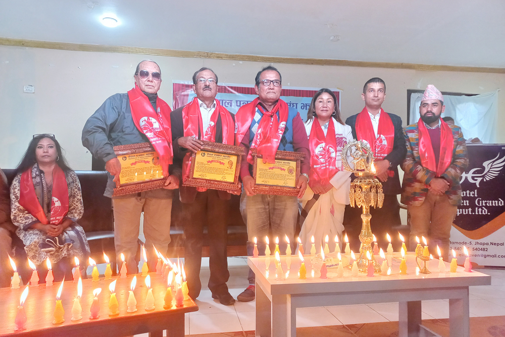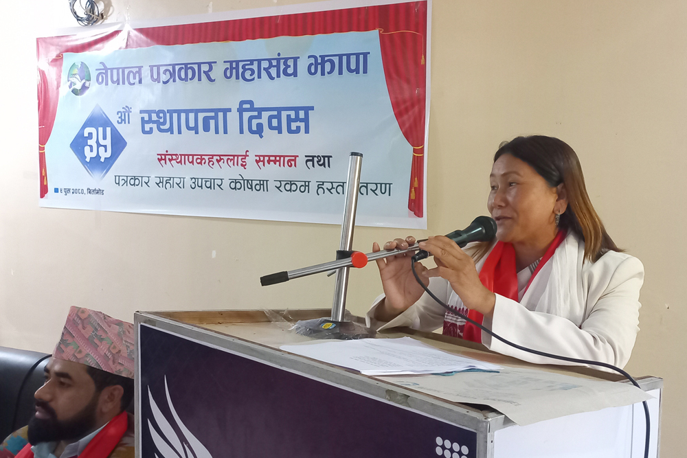 नेपाल पत्रकार महासंघ झापाको ३५ औं स्थापना दिवसको अवसरमा आज आयोजित संस्थापकहरुलाई सम्मान तथा पत्रकार सहारा उपचार कोषमा रकम हस्तान्तरण कार्यक्रममा सम्बोधन गर्दै उहाँले मुलुक समृद्धिका लागि पत्रकारले भ्रष्टाचारविरुद्ध र सुशासनका पक्षमा कलम चलाउनुपर्ने जोड दिनुभयो ।