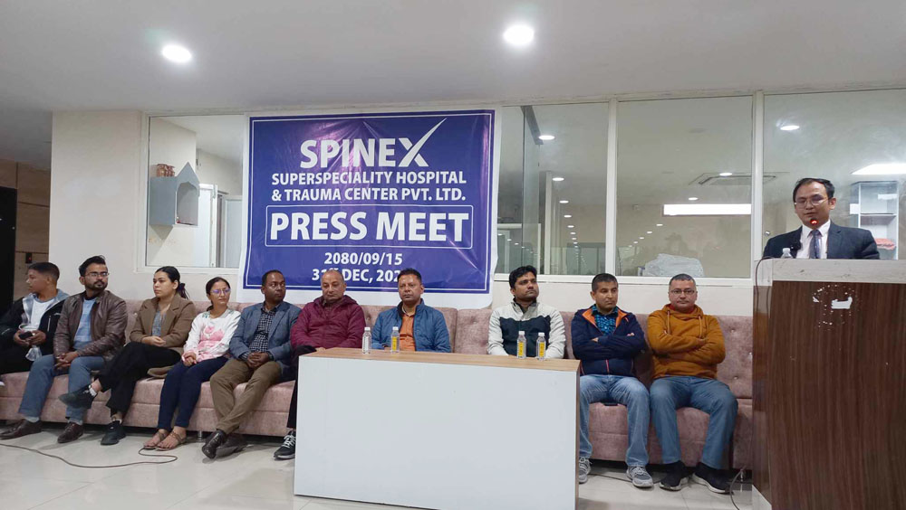 पत्रकार सम्मेलनमा हस्पिटलका स्पाइनल सर्जन डा. लक्ष्मीप्रसाद मैनालीले दुर्घटनाबाट नेपालमा दैनिक ३० जनाको मृत्यु÷गम्भीर घाइते हुने गरेको बताउँदै मृत्यु घटाउन स्पाइनल एक्स गतिलो थलो बन्ने बताउनुभयो । उहाँले नसर्ने रोगपछि दुर्घटनाबाट मृत्यु हुनेको संख्या अधिक रहेको समेत उल्लेख गर्नुभयो ।