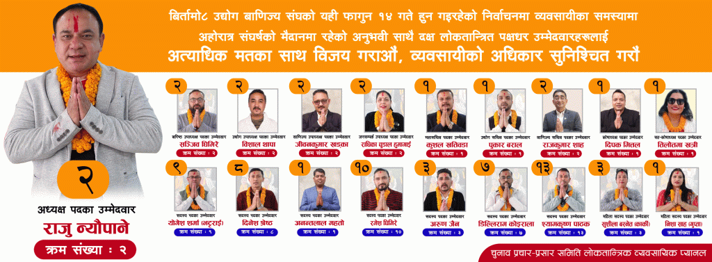 आफुहरुले जितेमा ब्यवसायीका हरेक समस्या समाधानका लागि पहल गर्ने प्रतिबद्धता समेत जनाए । उनले मतदातालाई अनावश्यक पर्चाबाजीको पछि नलाग्न आग्रह समेत गरेका छन् ।