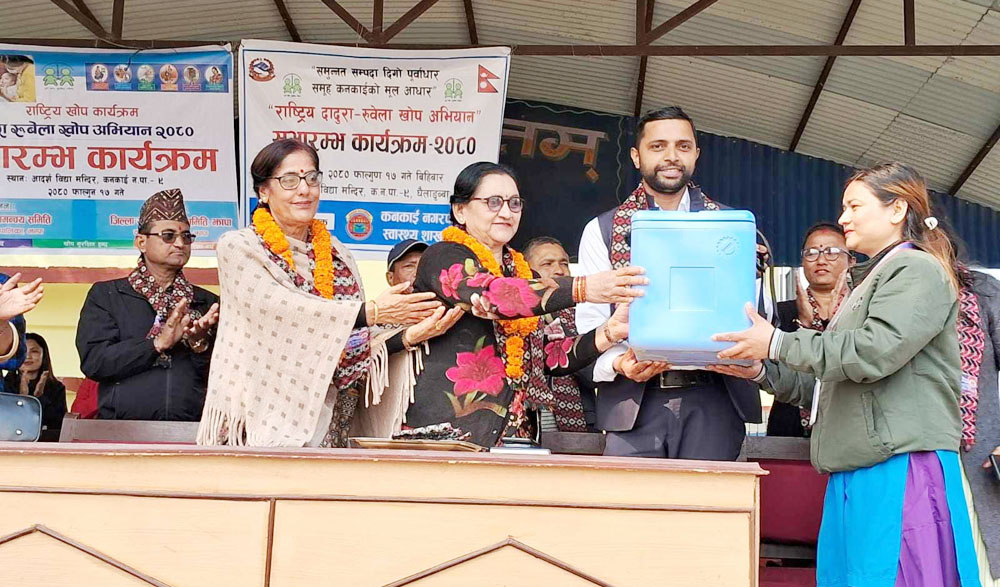 कनकाई नगरपालिकास्थित आदर्श विद्या मन्दिर आयोजित कार्यक्रममा जिल्ला समन्वय समिति झापाका उपप्रमुख शान्ता रोक्काले खोप अभियानको उद्घाटन गर्नुभयो । कनकाई नगरपालिकामा आजदेखि फागुन ३० गतेसम्म खोप अभियान सञ्चालन हुँदैछ । कनकाई नगरपालिकाकी उपप्रमुख आशा शर्मा शिवाकोटीको अध्यक्षतामा कार्यक्रम भएको थियो ।