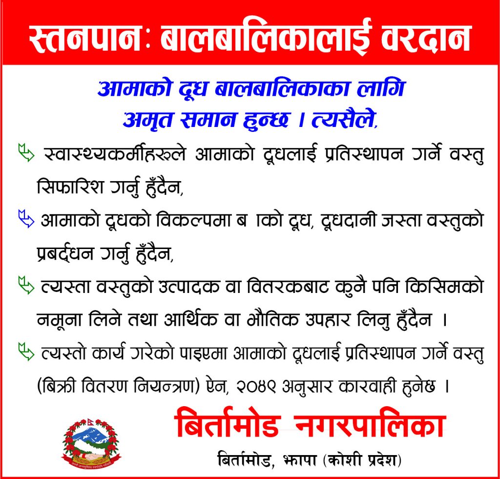 बिर्तामोड, २१ फागुन । झापाको बिर्तामोडस्थित बिर्तामोड नगर अस्पतालले एक वर्षमा ७६ हजार ५ सय ६९ जना बिरामीलाई उपचार सेवा प्रदान गरेको छ ।