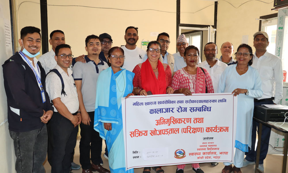 वडा नम्बर ५ का ५२ ववर्षीय पुरुषमा कालाजारको संक्रमण देखिएको हो । संक्रमित फेला परेपछि स्वास्थ्य कार्यालय झापाले जनप्रतिनिधि, स्वास्थ्यकर्मी, महिला स्वास्थ्य संयमसेविका, सरोकारवाला लगायतलाई अभिमुखिकरण तथा सक्रिय खोजपडताल परिक्षण कार्यक्रम अघि बढाएको छ ।