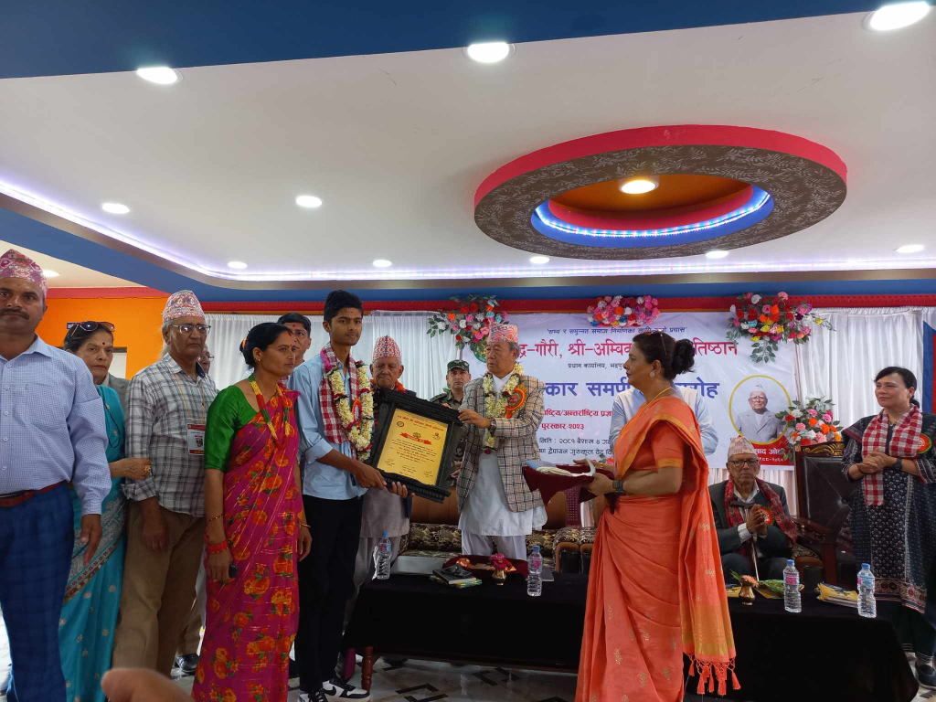 त्यसैगरी, यस वर्षको ‘देवी ओली स्मृति राष्ट्रिय बाल पुरस्कार’ झापाका बुद्धशान्ति गाउँपालिका–१ डुम्रिबोटका १७ वर्षीय सबिन बाँस्कोटालाई प्रदान गरिएको छ । उहाँलाई रू एक लाख एक हजार एक सय ११ पुरस्कार राशी तथा सम्मानपत्रसहित प्रदेश प्रमुख खापुङले प्रदान गर्नुभयो ।