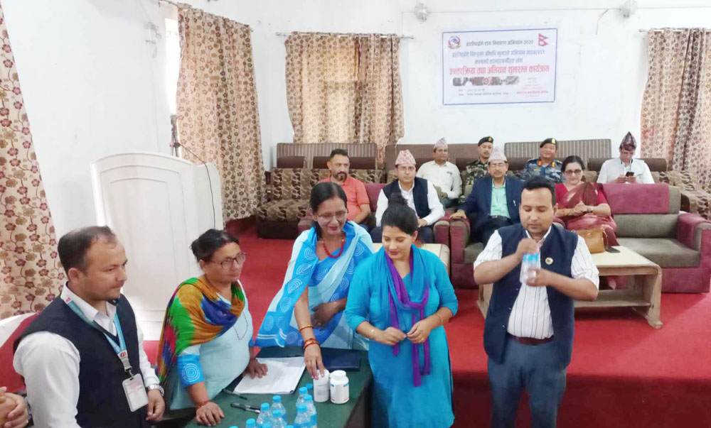 जिल्लामा औषधि सेवनका लागि छ सय छ जना स्वास्थ्य स्वयम्सेविका र सात सय ५० जना स्वास्थ्यकर्मी परिचालन गरिने स्वास्थ्य कार्यालय झापाका जनस्वास्थ्य अधिकृत विश्वनाथ श्रेष्ठले जानकारी दिनुभयो ।