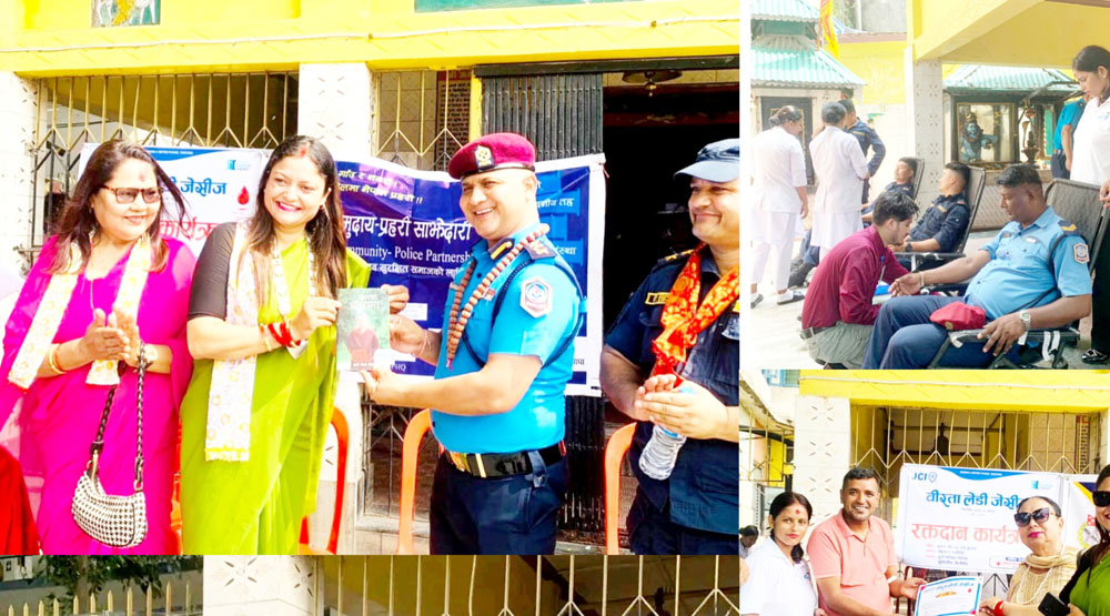 झापामा रगतको अभाव बढ्दै गएकाले त्यसको व्यवस्थापनका लागि रक्तदान कार्यक्रम आयोजना गरिएको वीरता लेडी जेसीज सन् २०२४ की अध्यक्ष मेनुका ओलीले बताइन् । झापाका प्रहरी प्रमुख मिलन केसीको प्रमुख आतिथ्यमा रक्तदान कार्यक्रम भएको हो । लेडी जेसीजकी महासचिव मुना ढुंगेलका अनुसार कार्यक्रममा १० महिलासहित ३३ जनाले रक्तदान गरेका छन् ।