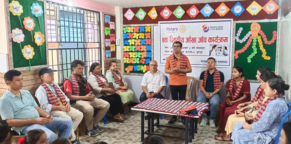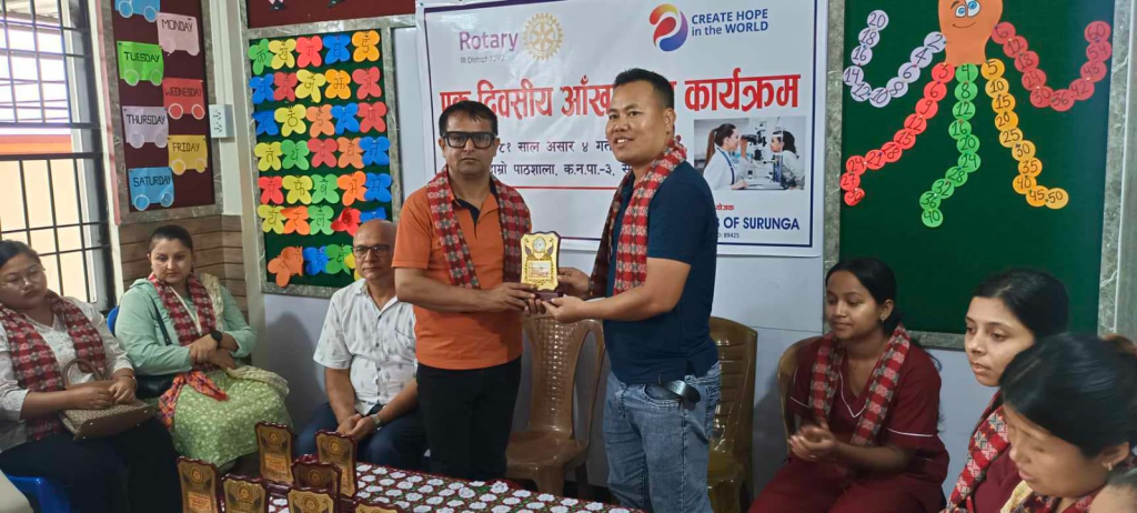 रोटरी क्लब अफ सुरूङ्गाको आयोजना र मेची आँखा अस्पतालको प्राविधिक सहयोगमा यहाँस्थित हाम्रो पाठशालामा दुई सय ५० जना बालबालिकाको आँखा परीक्षण गरिएको हो । रोटरी क्लब अफ सुरूङ्गाका अध्यक्ष शिव कडेलको अध्यक्षतामा भएको कार्यक्रमको दोस्रो उपाध्यक्ष सरला दाहाल पोखरेलले सञ्चालन गर्नुभएको थियो । कार्यक्रममा प्रथम उपाध्यक्ष अखिलकुमार कोइरालाले स्वागत मन्तव्य राख्नुभएको थियो ।