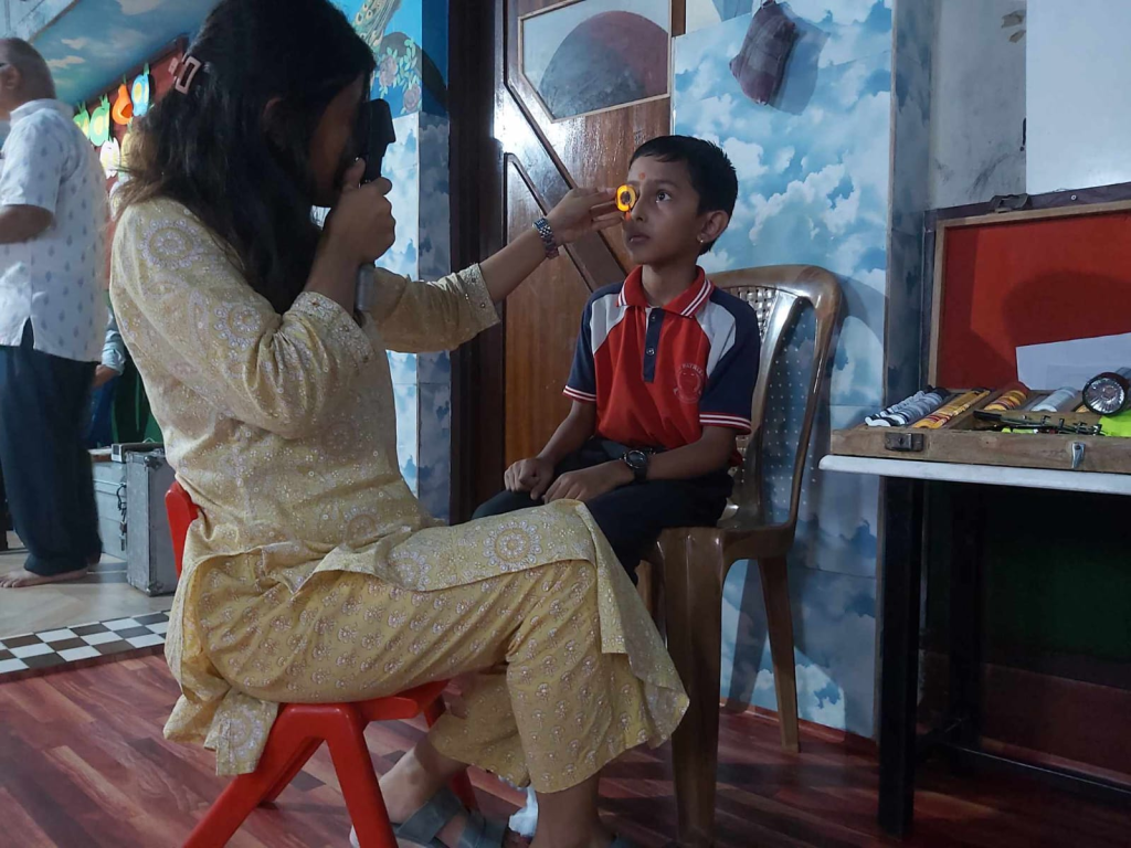 डाक्टर अमित कुमार सिंह अमित कुमार सिंहको नेतृत्वमा ८ जना स्वास्थ्यकर्मीको टोलीले बालबालिकाहरुको आँखा जाँच गरेको थियो । आँखा परीक्षणका पछि चार जना बालबालिकालाई चस्मा प्रदान गरिएको थियो भने नौ जना बालबालिकालाई थप परीक्षणका लागि मेची आँखा अस्पतालमा रिफर गरियो । अन्य केही बालबालिकालाई आँखाका समस्या निदानका लागि औषधि वितरण गरिएको थियो ।