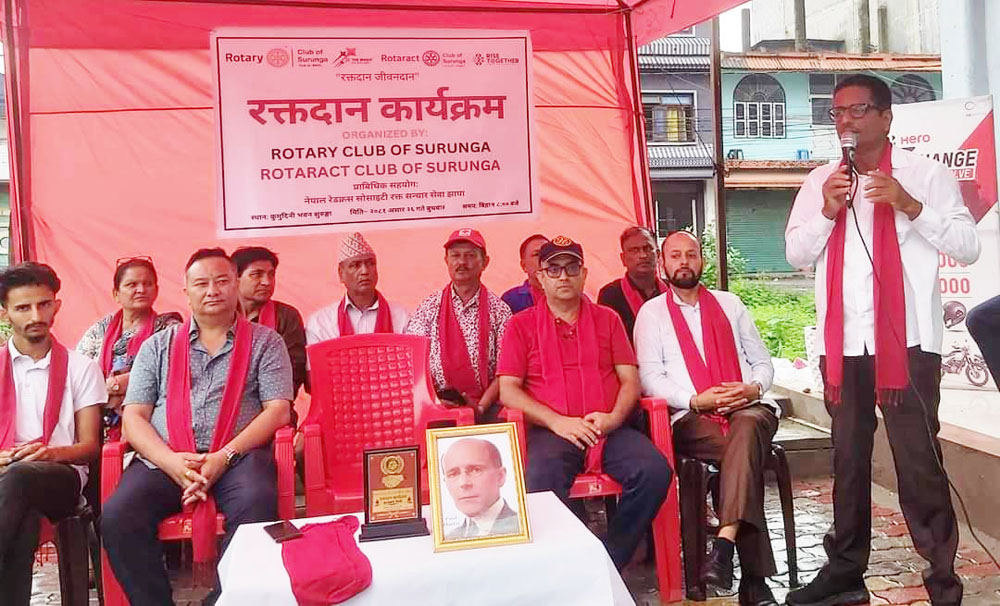 रोटरी क्लब अफ कनकाई सुरुङ्गा तथा रोट्र्याक्ट क्लब अफ कनकाई सुरुङ्गाको संयुक्त आयोजनामा आज रक्तदान कार्यक्रमको आयोजना गरिएको हो ।रक्त सञ्चार केन्द्र झापा शाखाको प्राविधिक सहयोगमा भएको रक्तदान कार्यक्रममा ५४ जनाले रक्तदान गरेको बताएको छ । वर्षातको समयमा रगतको अभाव हुन सक्ने अवस्थालाई मध्यनजर गर्दै रोटरी क्लवले रक्तदान कार्यक्रमलाई आफ्नो वार्षिक क्लालेण्डरका रुपमा संचालन गर्दै आएको रोटरी क्लव अफ सुरुङ्गाका अध्यक्ष लुवराज उप्रेतीले जानकारी दिनुभयो ।
